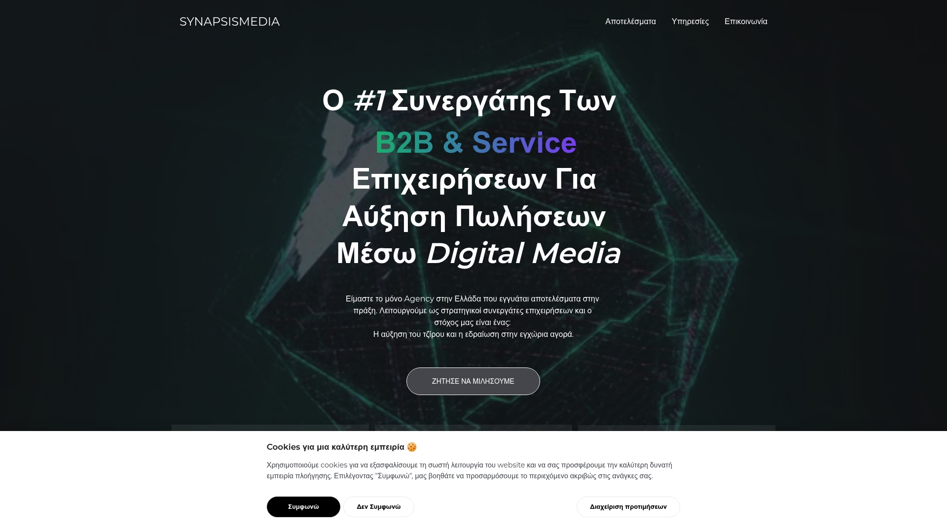 Στη Synapsis Media σχεδιάζουμε και εκτελούμε στρατηγικές digital marketing που ταιριάζουν στις πραγματικές ανάγκες κάθε επιχείρησης. Από performance marketing και lead generation μέχρι αυτοματισμούς επικοινωνίας, κάθε ενέργεια βασίζεται σε δεδομένα και έχει σαφή στόχο. Αν θέλετε να σταματήσετε να μαντεύετε και να αρχίσετε να μετράτε, επικοινωνήστε μαζί μας και ας δούμε μαζί πού βρίσκεται η μεγαλύτερη ευκαιρία για την επιχείρησή σας.